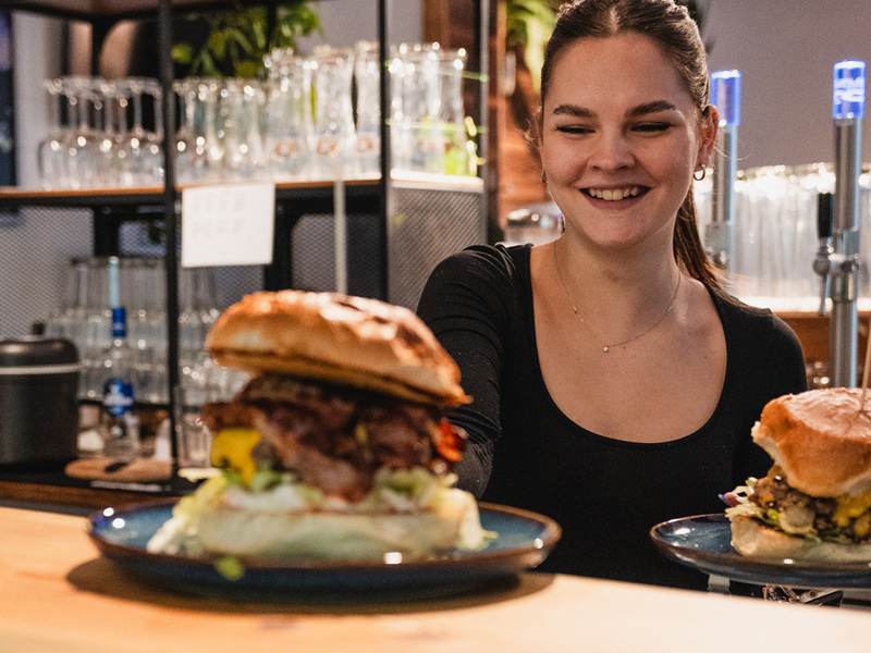 In der Burgerbar servieren wir saftige Burger aus regionalem Rindfleisch, zarte Steaks, knusprige Fritten und hausgemachte Dips. Dazu gibt’s Craft Bier, Cocktails und alles, was einen gelungenen Abend ausmacht.